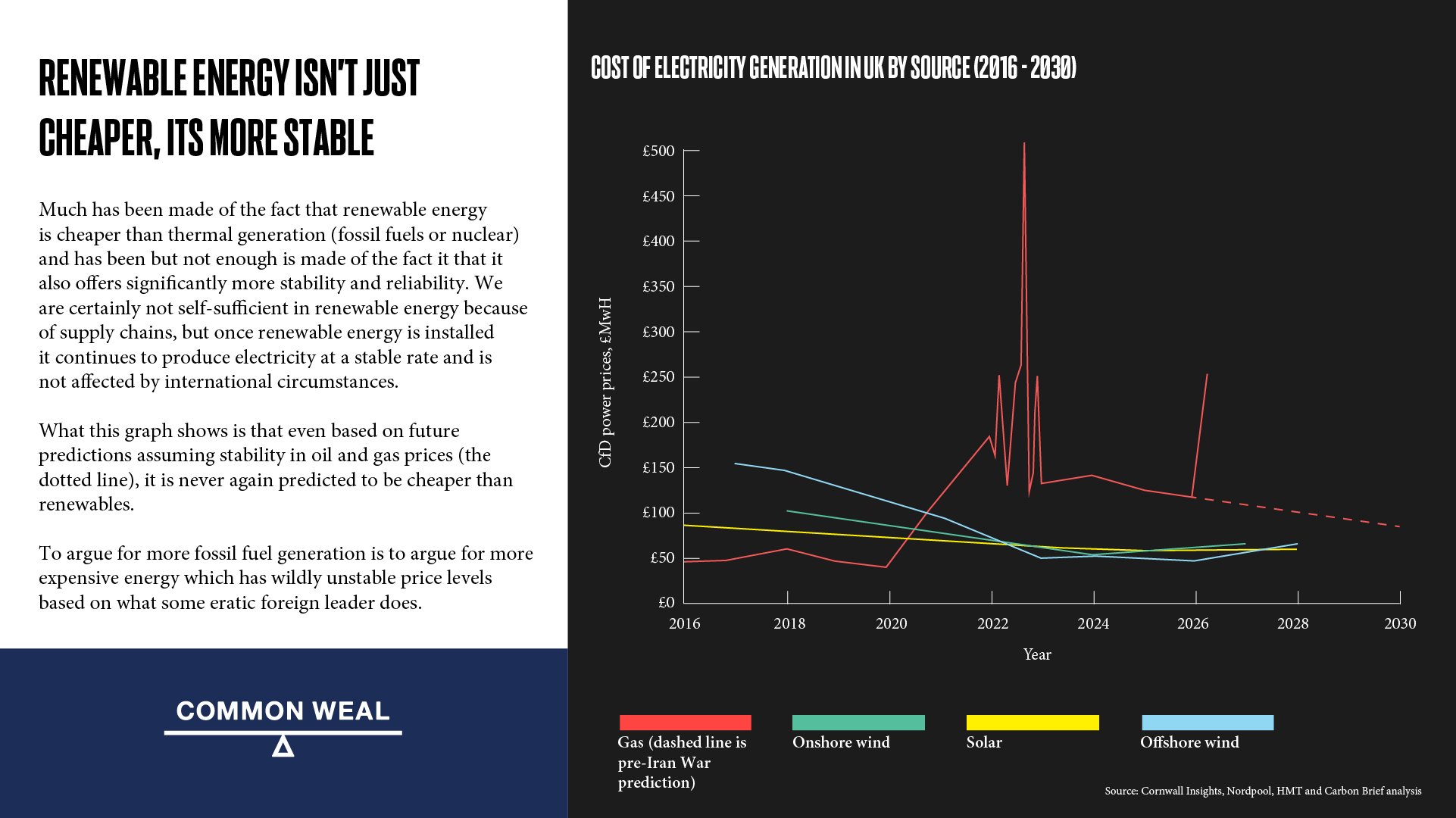 Line graph showing the cost and volatility of different sources of energy