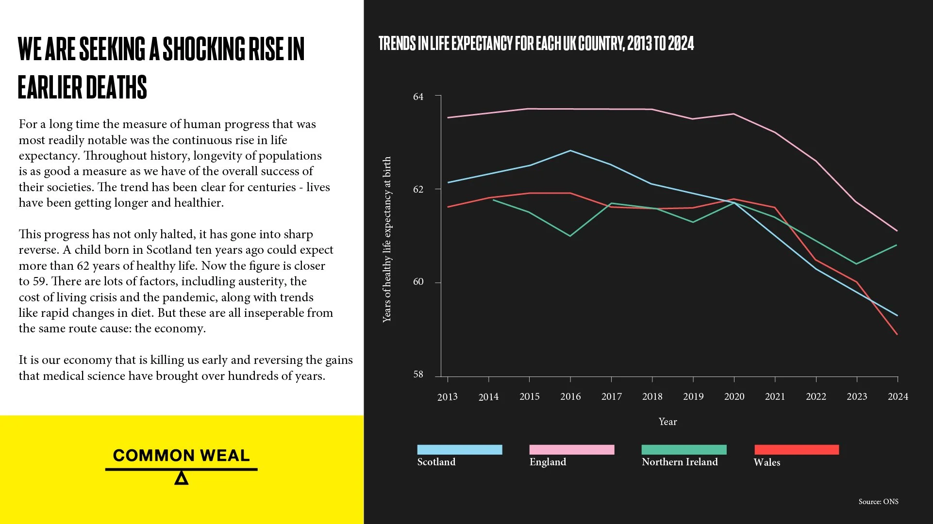 Line graph showing recent changes in life expectancy in the four UK countries